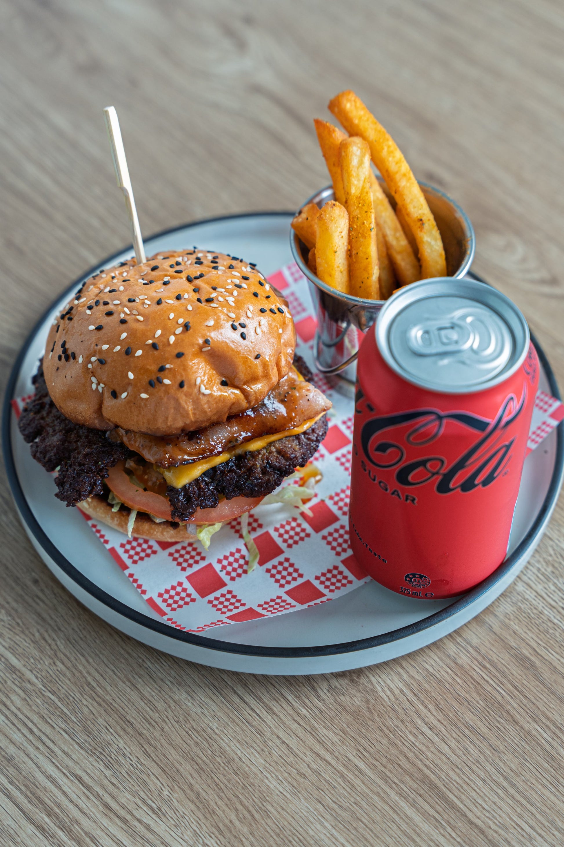 The ultimate indulgence. A juicy smashed Wagyu beef patty stacked with crispy bacon, fresh lettuce, tomato, onion, pickles, and melted cheese. Finished with our signature secret sauce and served with golden fries, this burger is rich, bold, and unforgettable. A true customer favourite and a must-try star dish in Burleigh and across the Gold Coast.