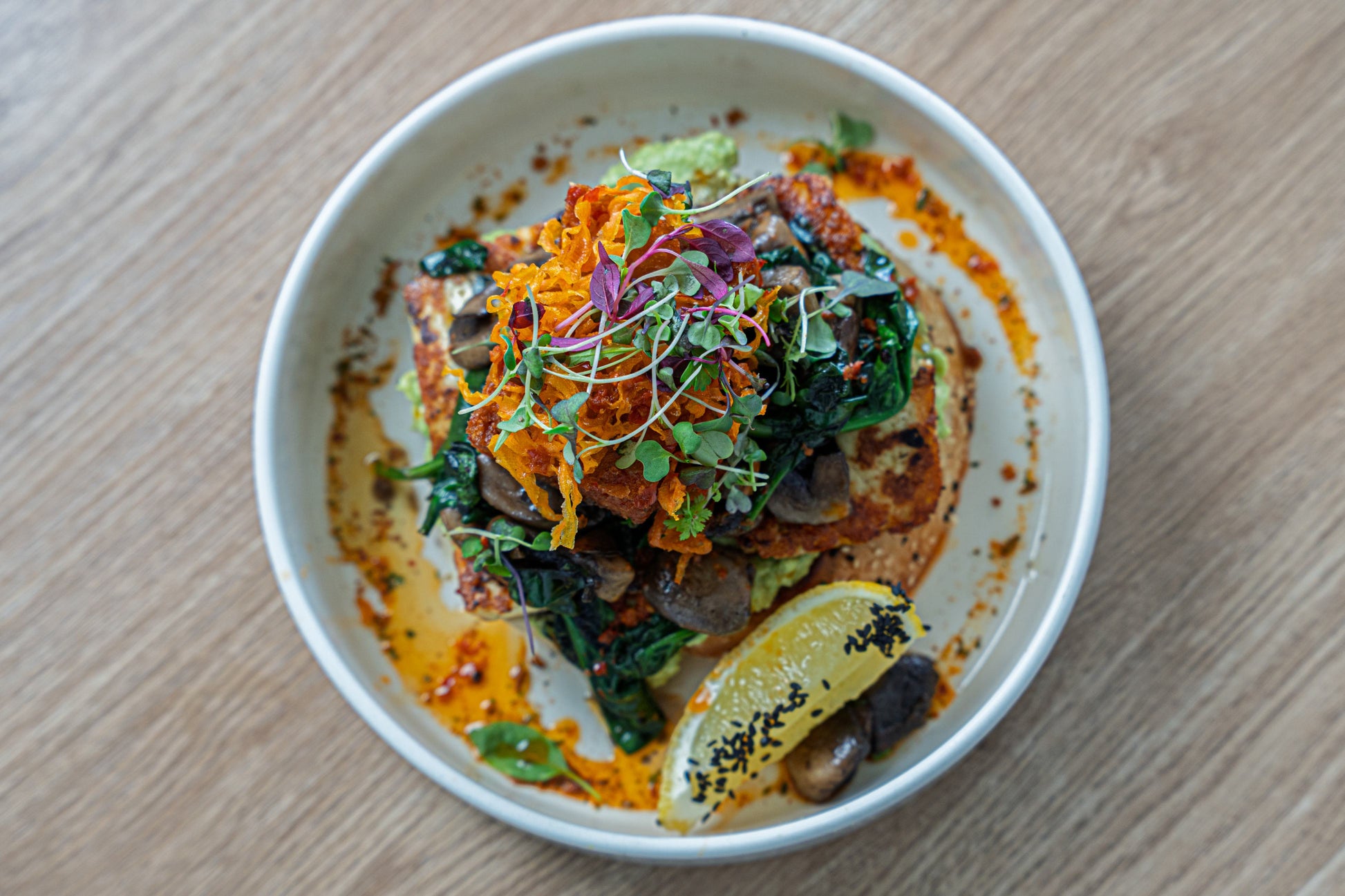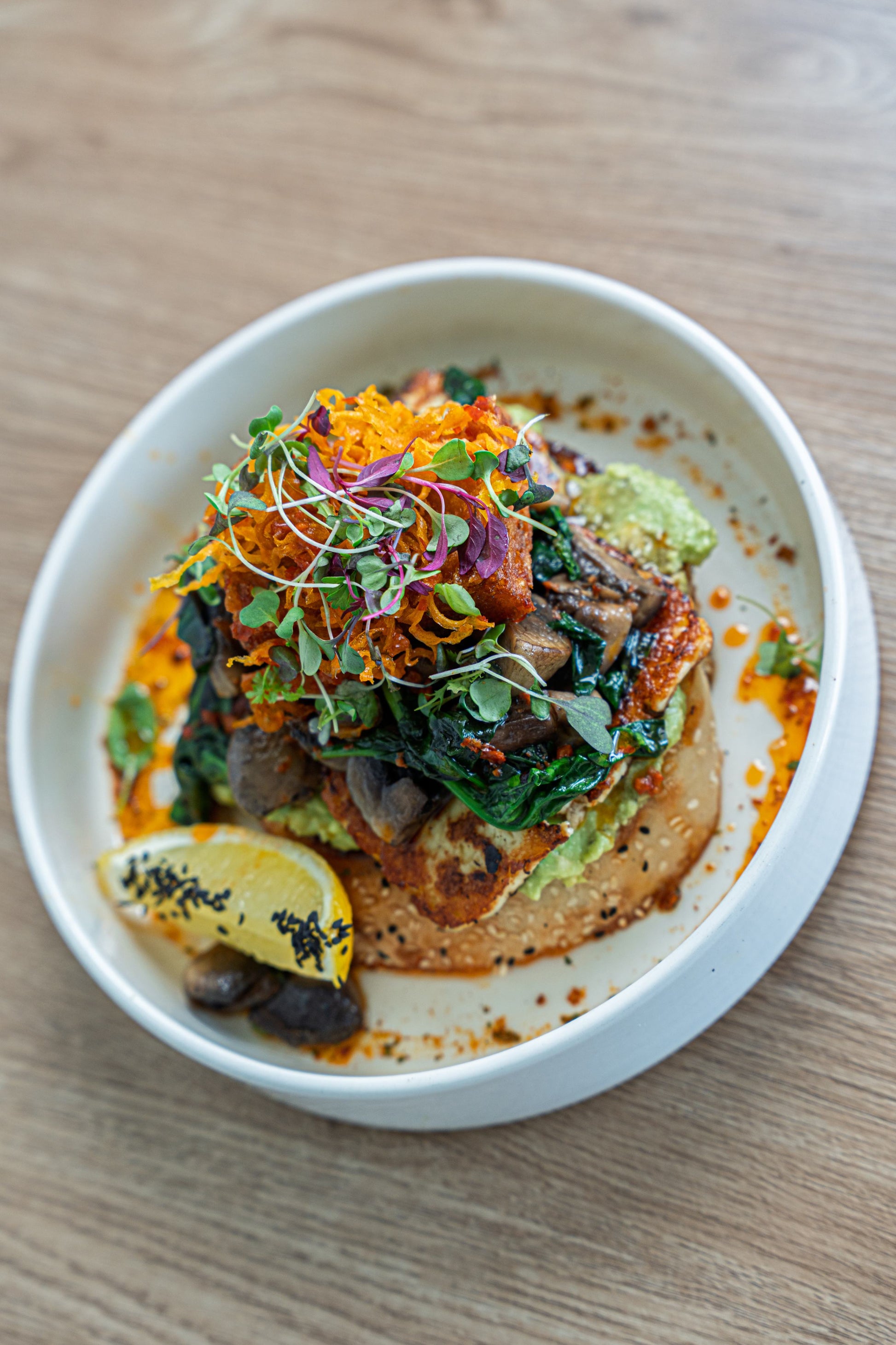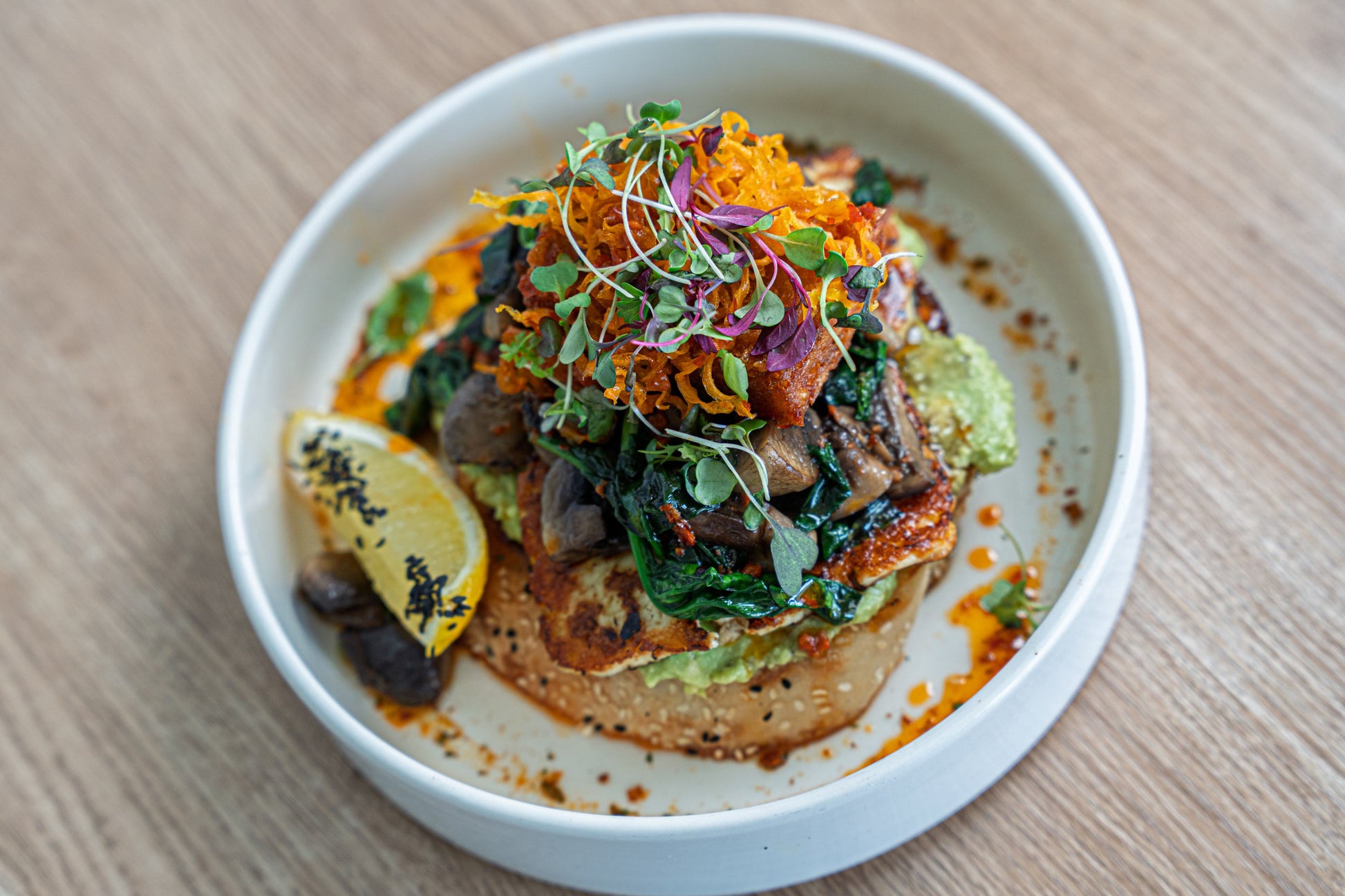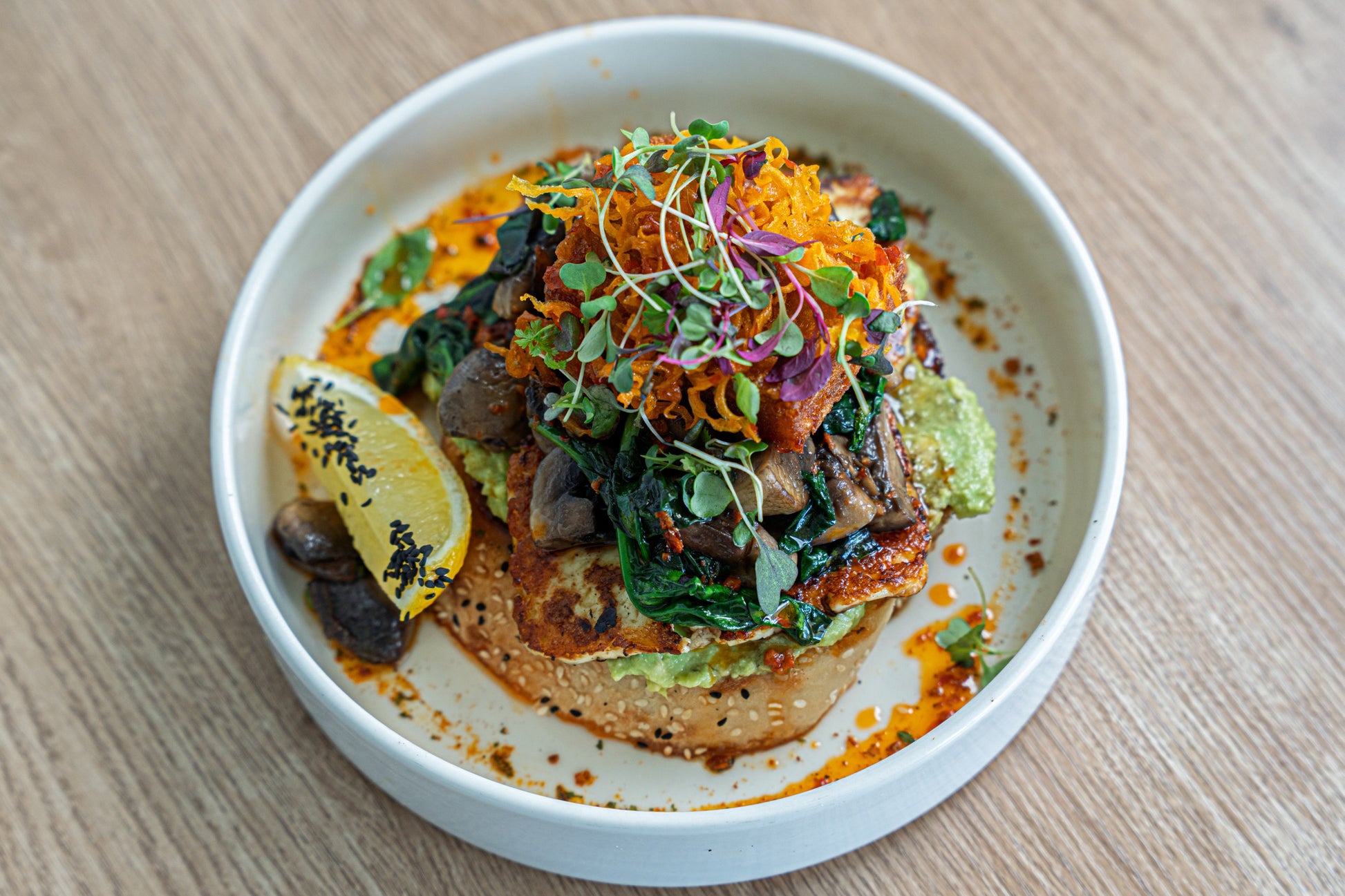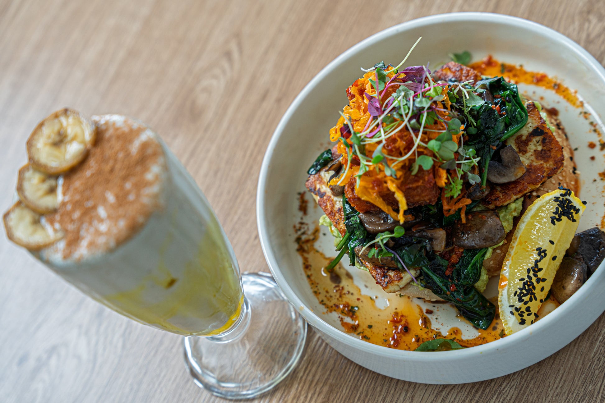 A wholesome vegetarian favourite stacked with flavour. Buttered toasts topped with grilled halloumi, sautΓ©ed spinach and mushrooms, golden hash browns, creamy avocado, and finished with a drizzle of house-made chilli oil. Hearty, indulgent, and satisfying the perfect cafΓ© breakfast or brunch for veggie lovers in Burleigh and across the Gold Coast.