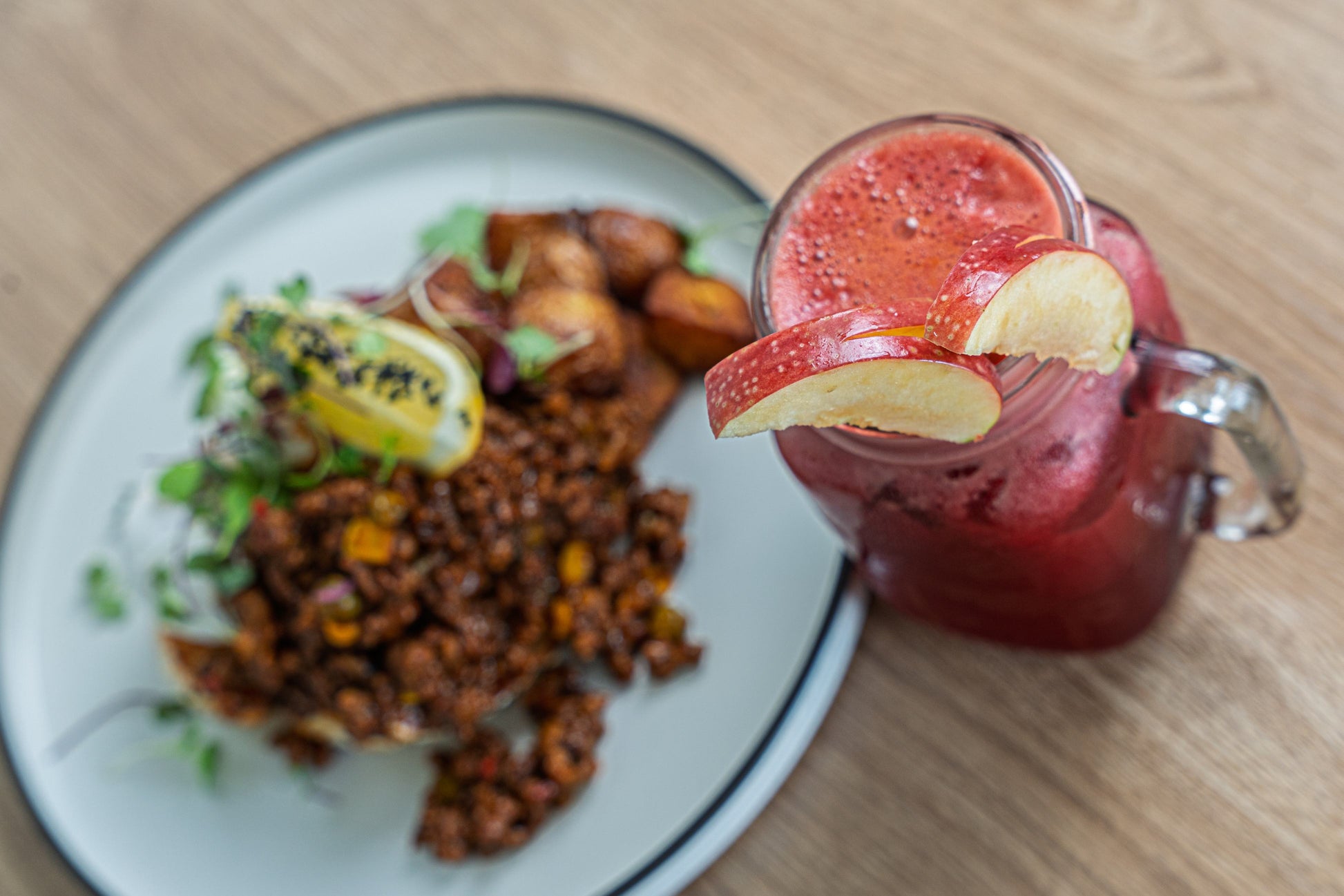 Two slices of toasted Turkish bread topped with our fresh bruschetta mix, creamy avocado, a perfectly poached egg, golden hash brown, melted cheese, and finished with a drizzle of rich balsamic glaze. Fresh, hearty, and indulgent this signature dish is a true customer favourite in Burleigh and across the Gold Coast.